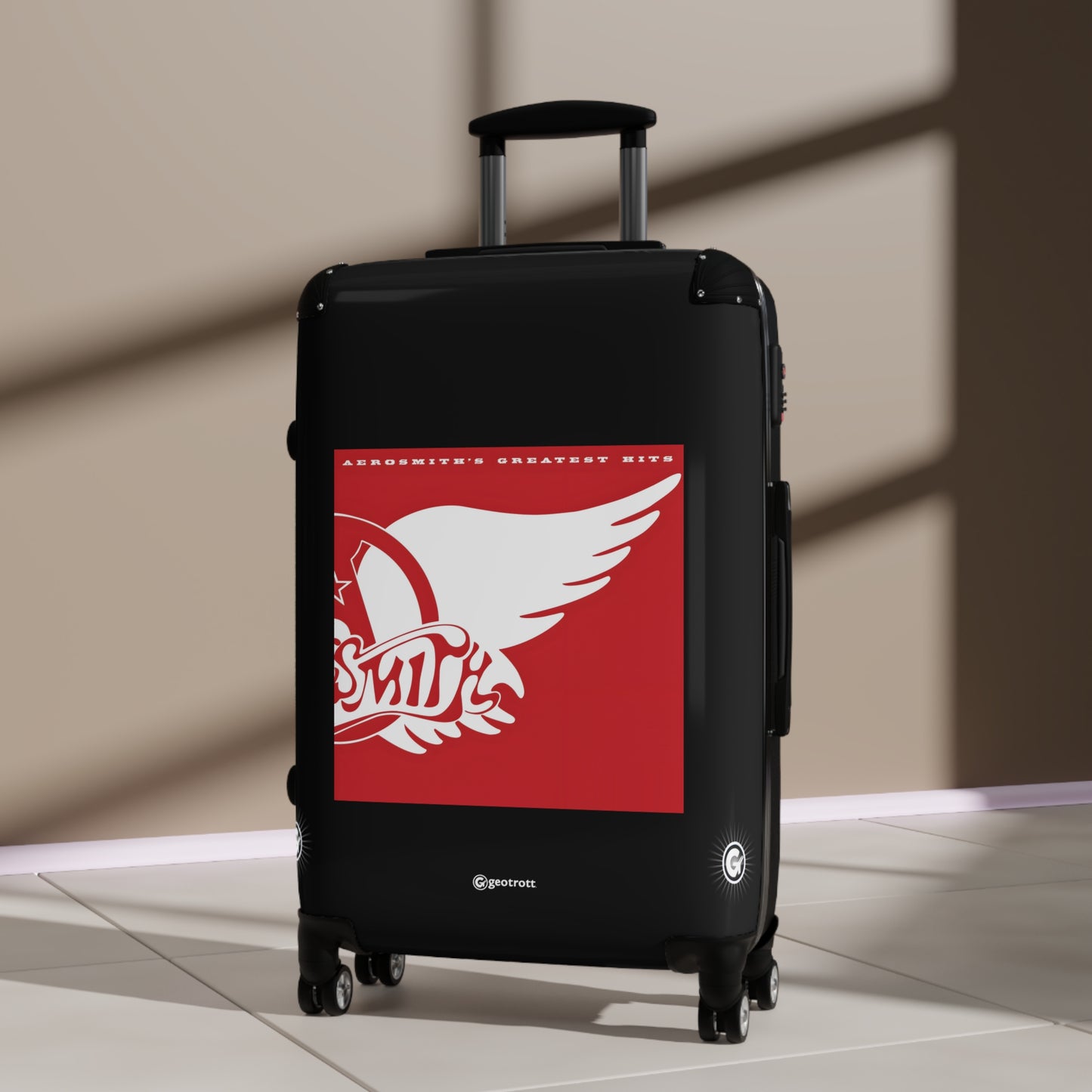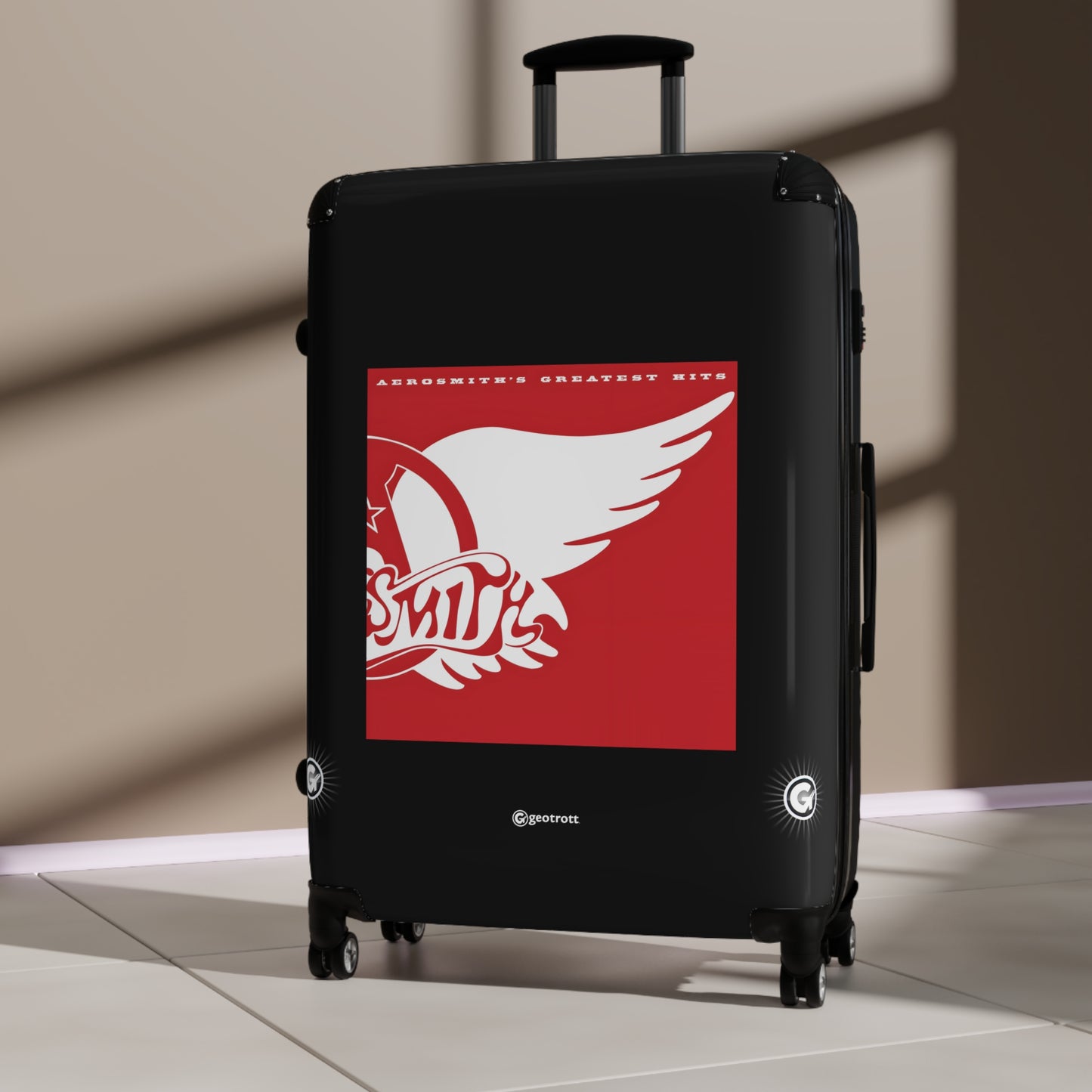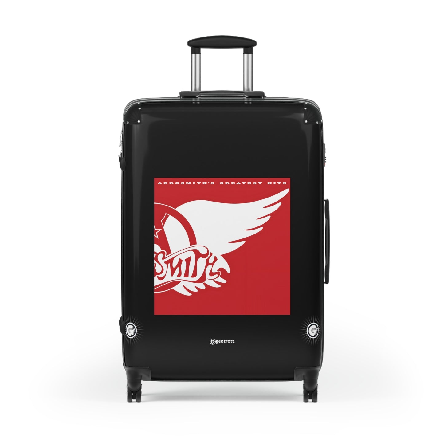 Dream on and hit the road with this Aero smith Greatest Hits Rolling Suitcase! Rocking the iconic album cover with bold, electrifying graphics, this luggage is as legendary as the Bad Boys from Boston themselves! Whether you're heading to a concert, a weekend getaway, or jet-setting to paradise, this case brings the toxic twin energy everywhere you go!