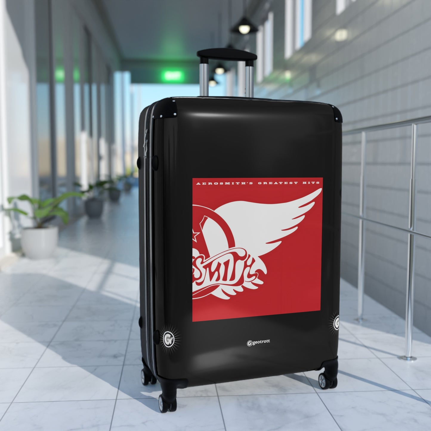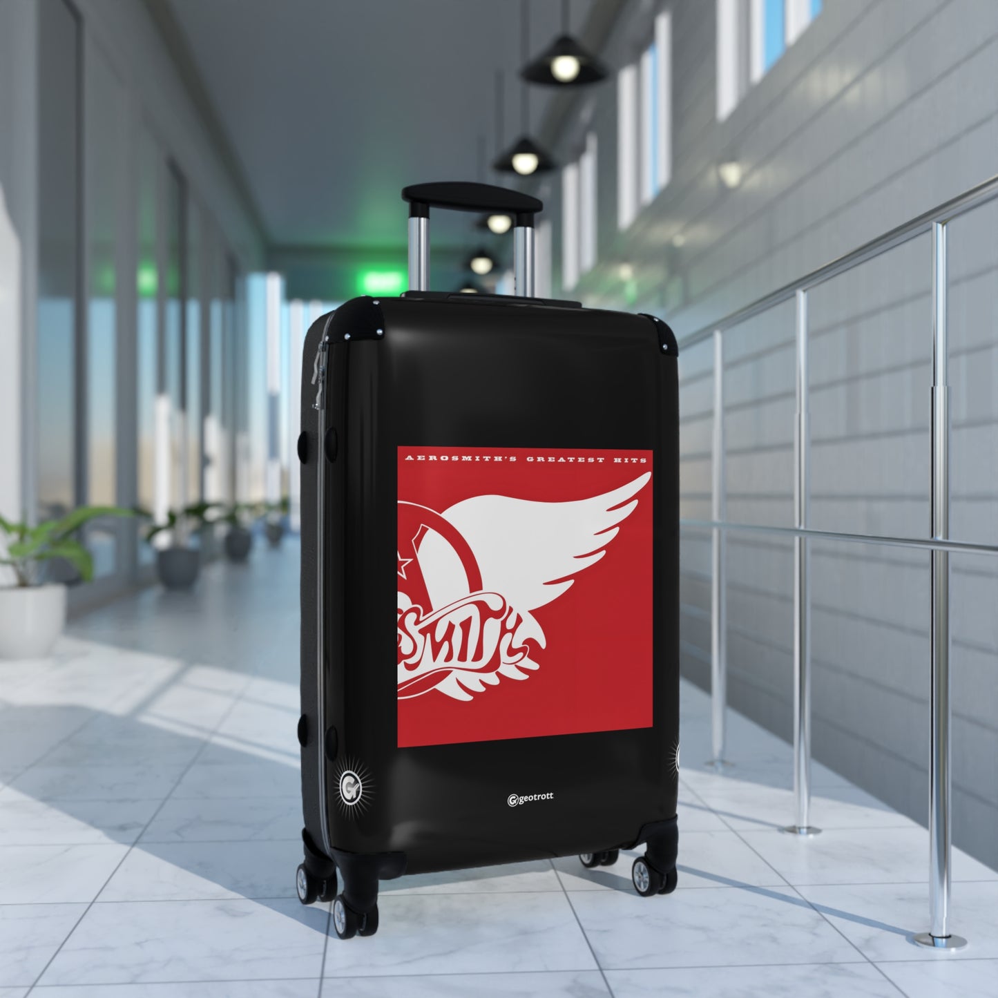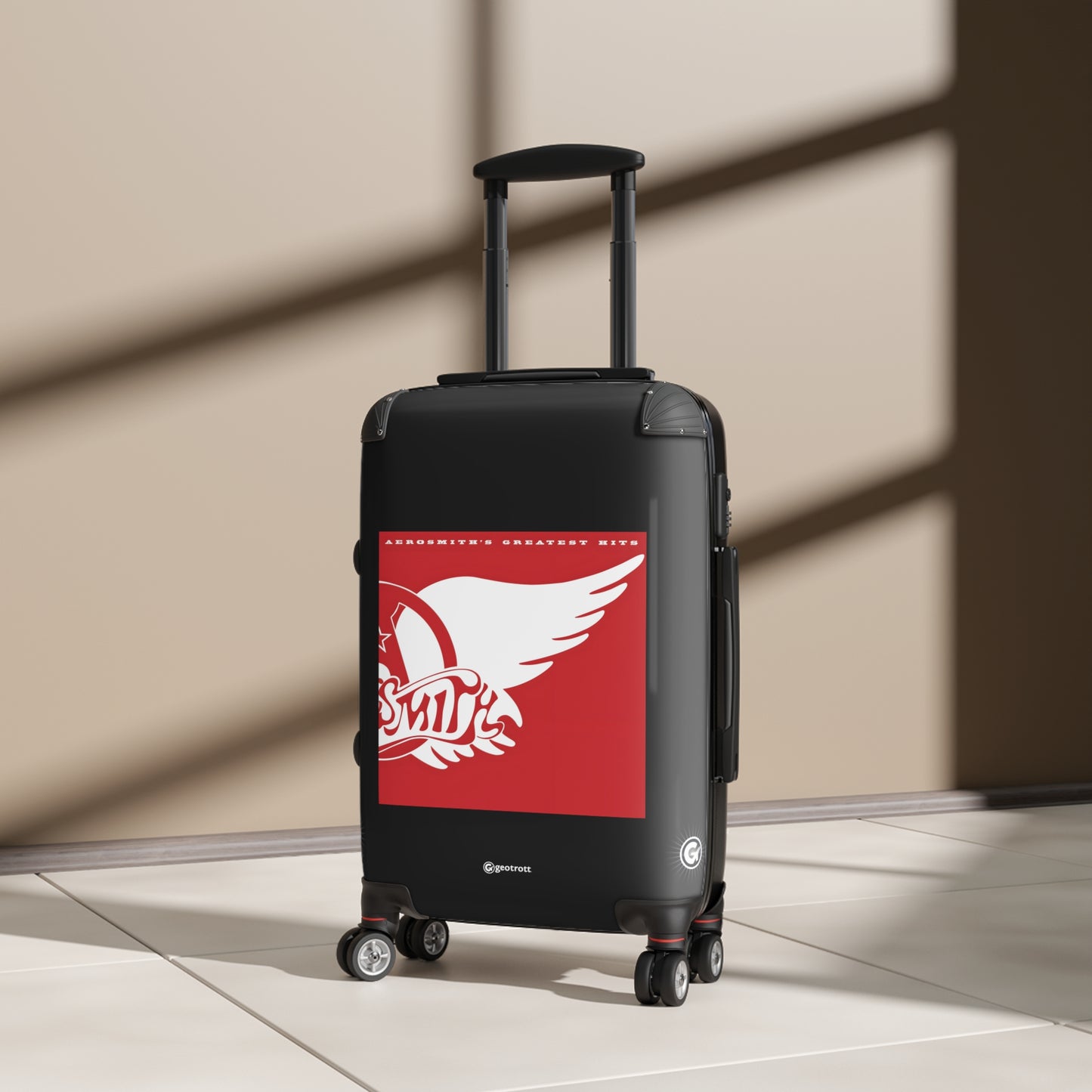 Dream on and hit the road with this Aero smith Greatest Hits Rolling Suitcase! Rocking the iconic album cover with bold, electrifying graphics, this luggage is as legendary as the Bad Boys from Boston themselves! Whether you're heading to a concert, a weekend getaway, or jet-setting to paradise, this case brings the toxic twin energy everywhere you go!