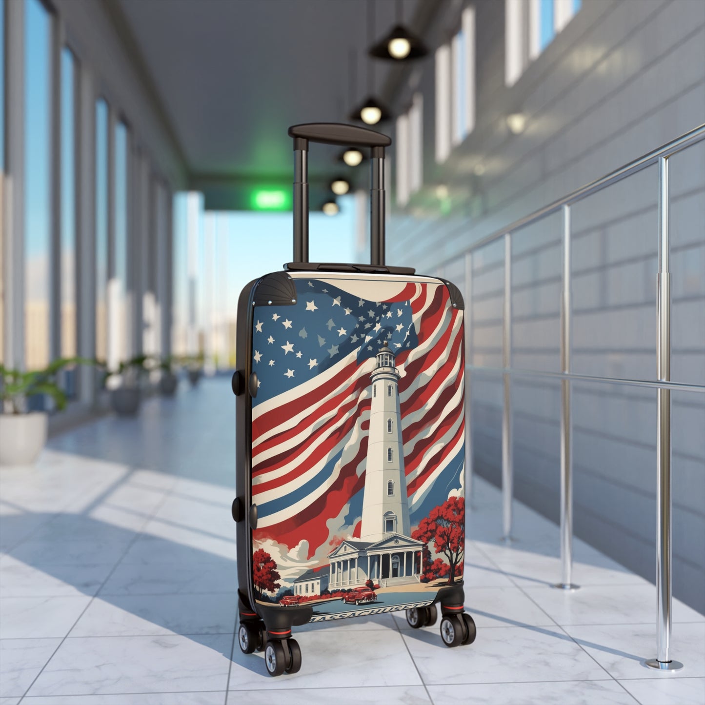 America'S Pride: Massachusetts Vintage Travel Poster, Patriotic Lighthouse And Flag Artwork Vintage Travel Poster