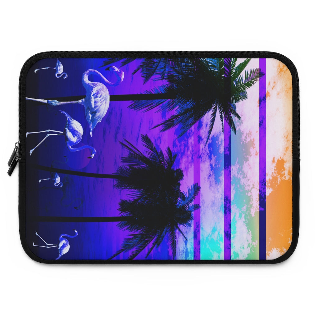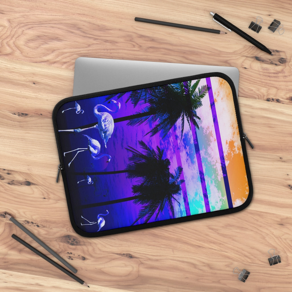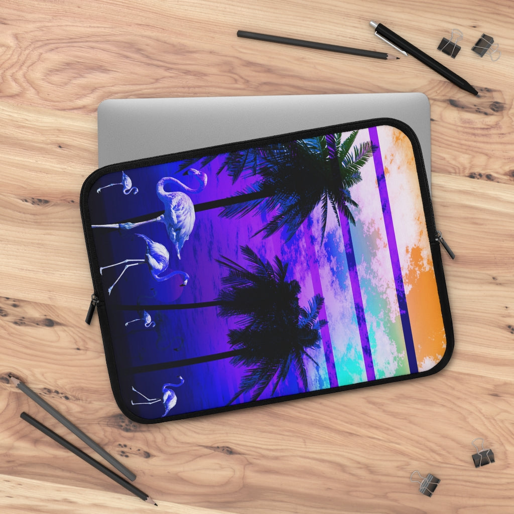 Geotrott Blue Beach Sunset Flamingos Laptop Sleeve