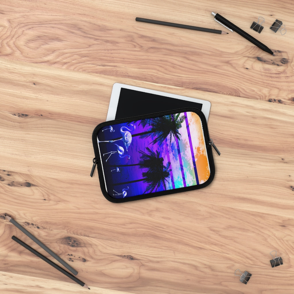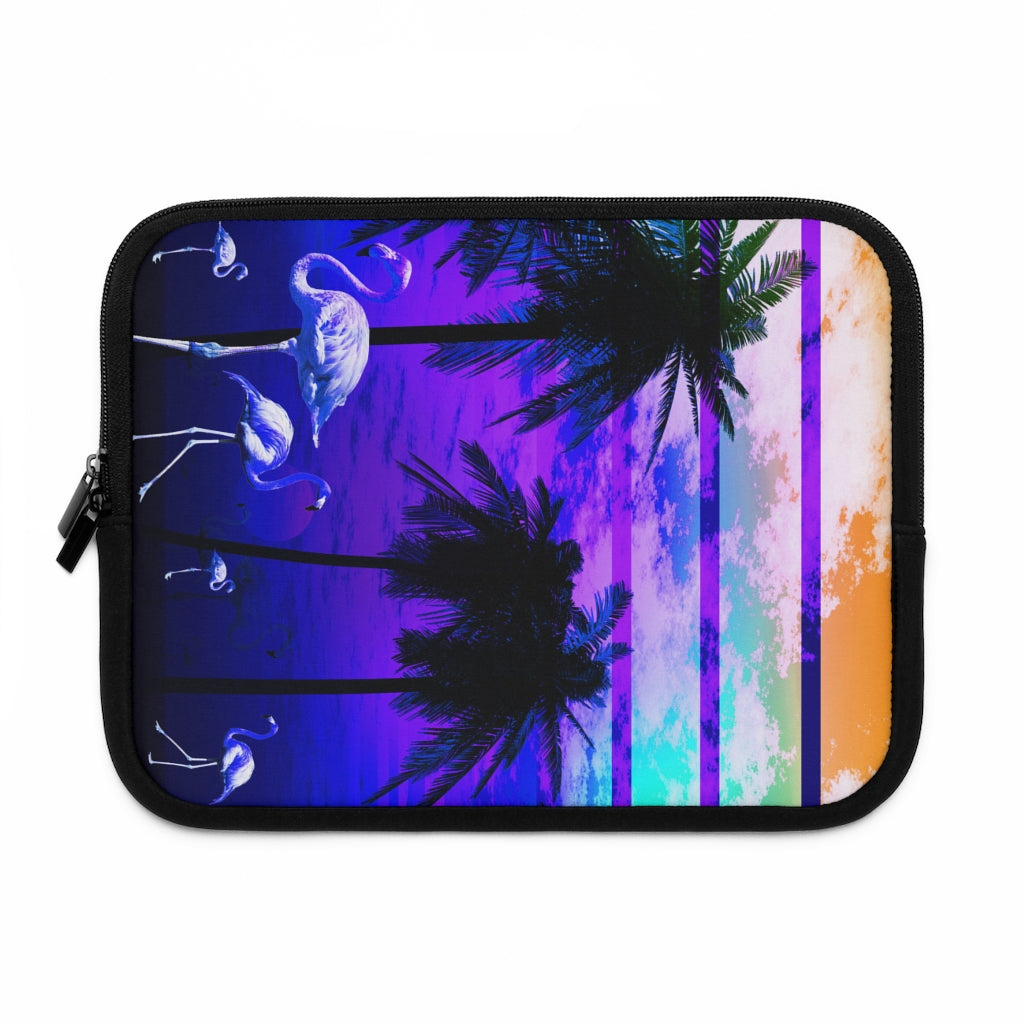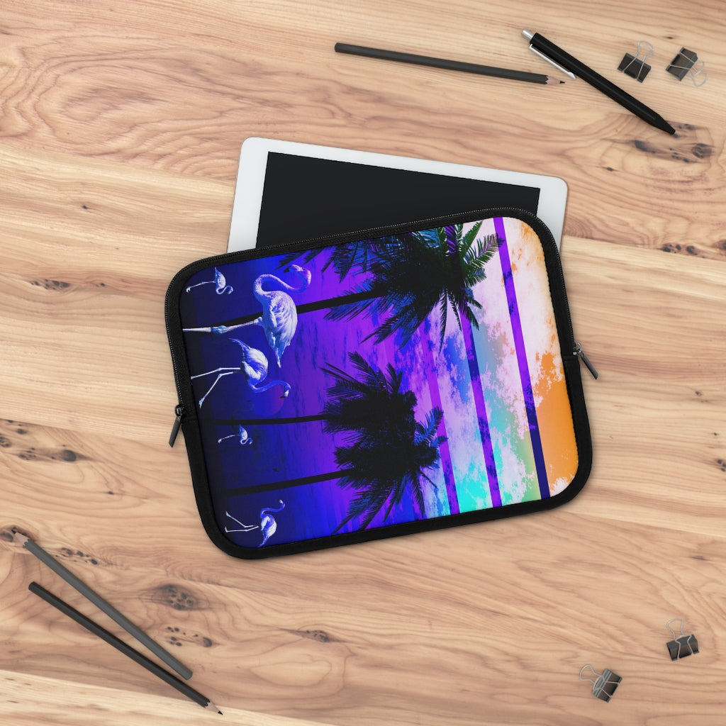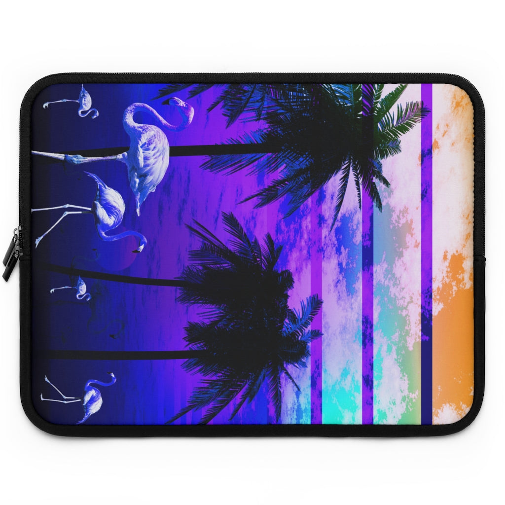 Geotrott Blue Beach Sunset Flamingos Laptop Sleeve