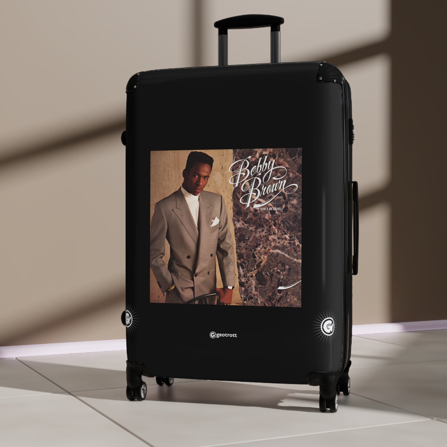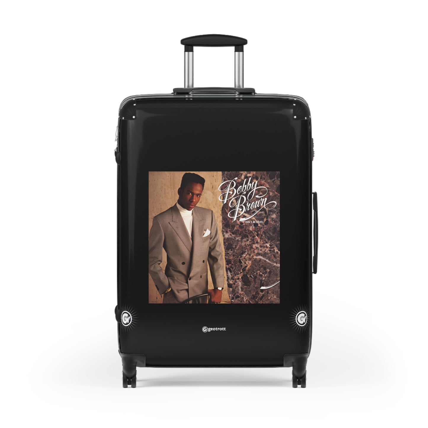 Take a trip back to the golden age of R&B with the Bobby Brown "Don't Be Cruel" Rolling Suitcase Spinner! Featuring iconic artwork from his legendary 1988 album, this bag shouts style louder than a "My Prerogative" chorus. Representing the era of big beats and smooth moves, it’s more than luggage; it's a statement.