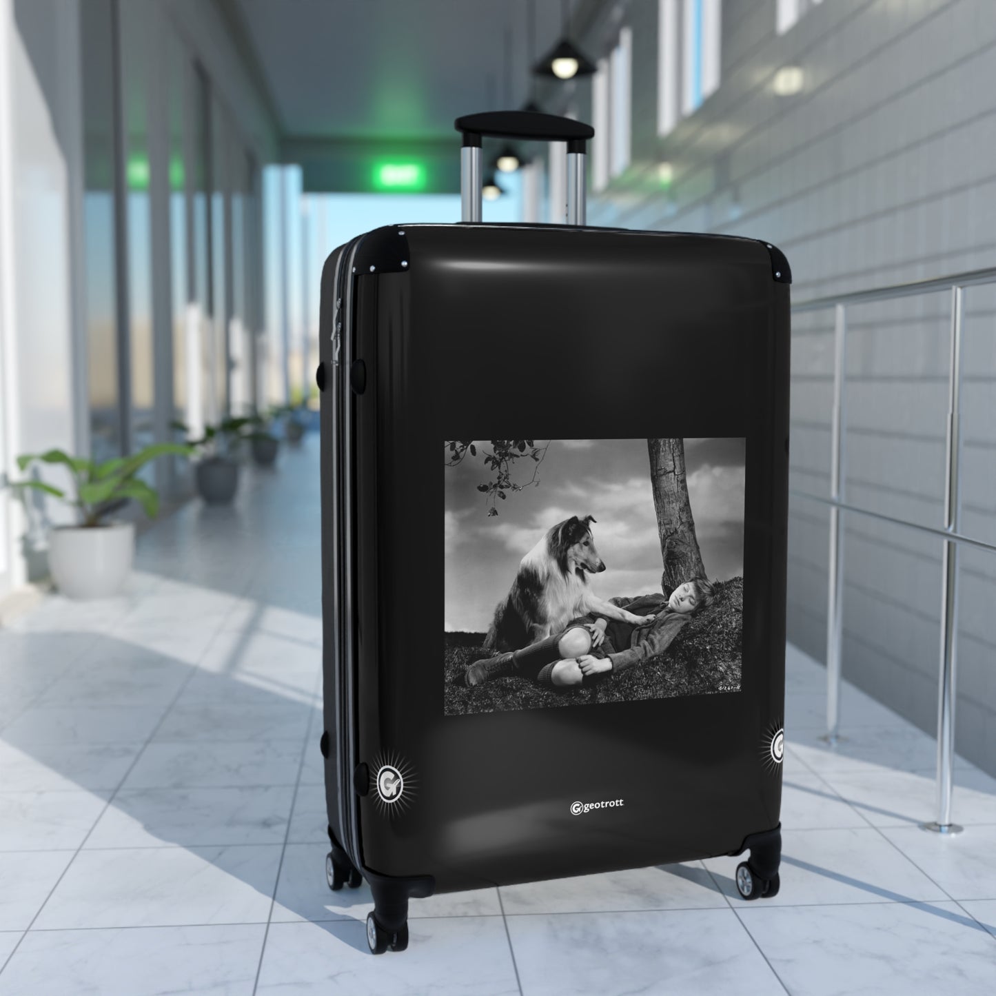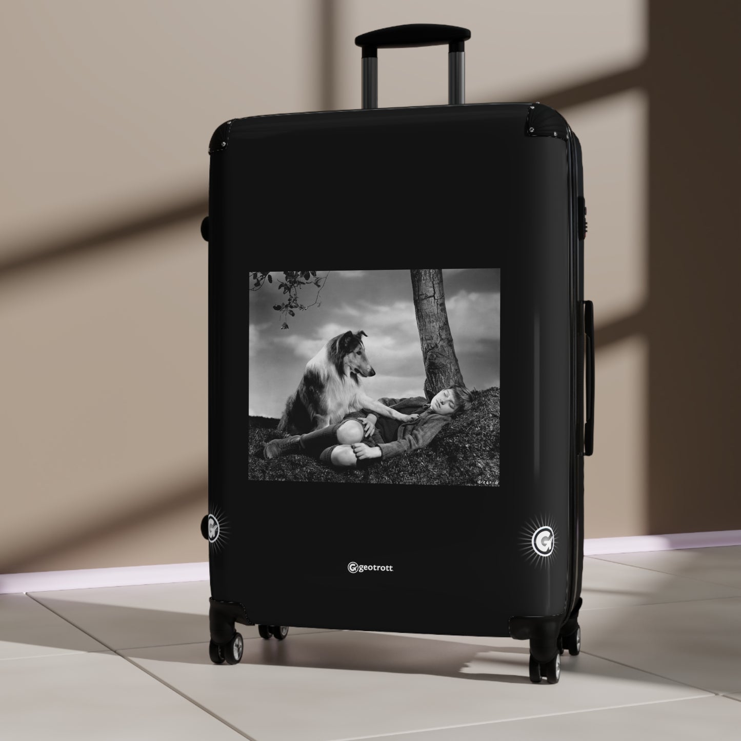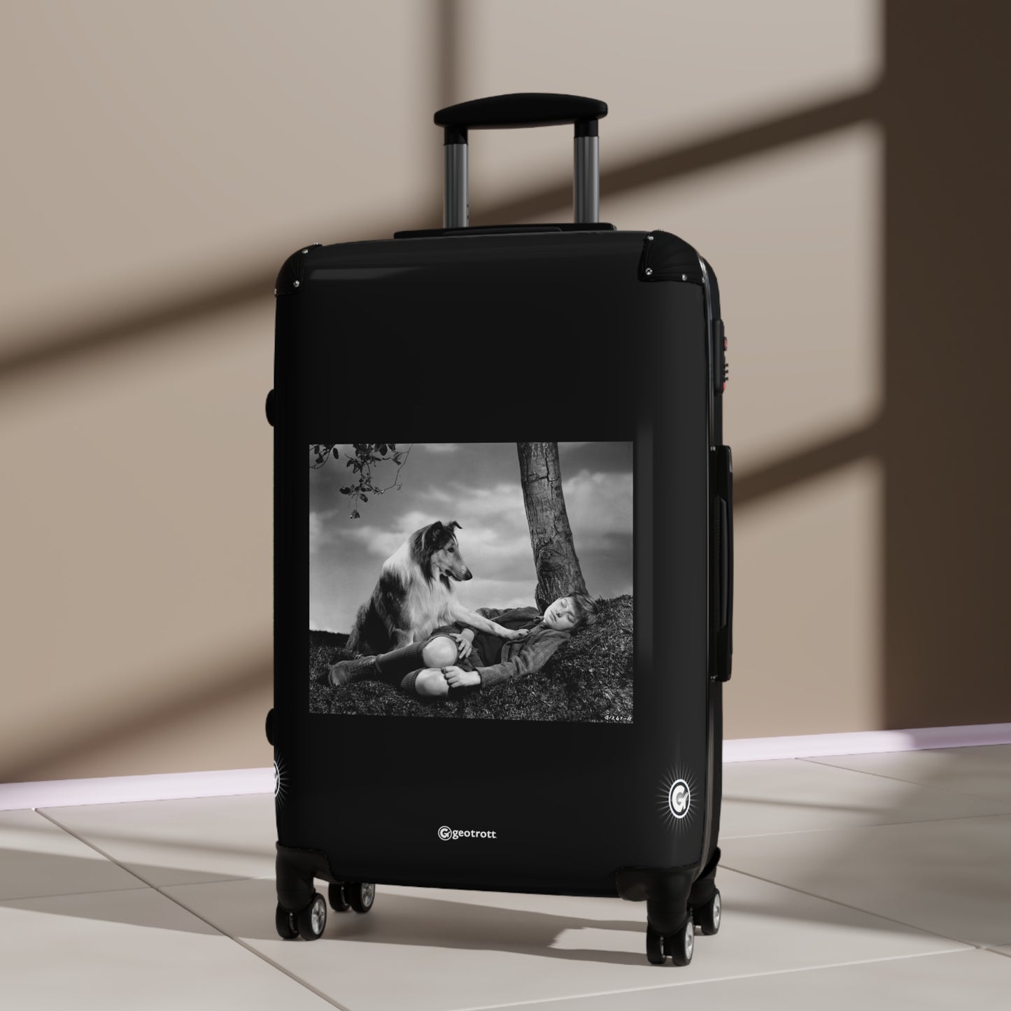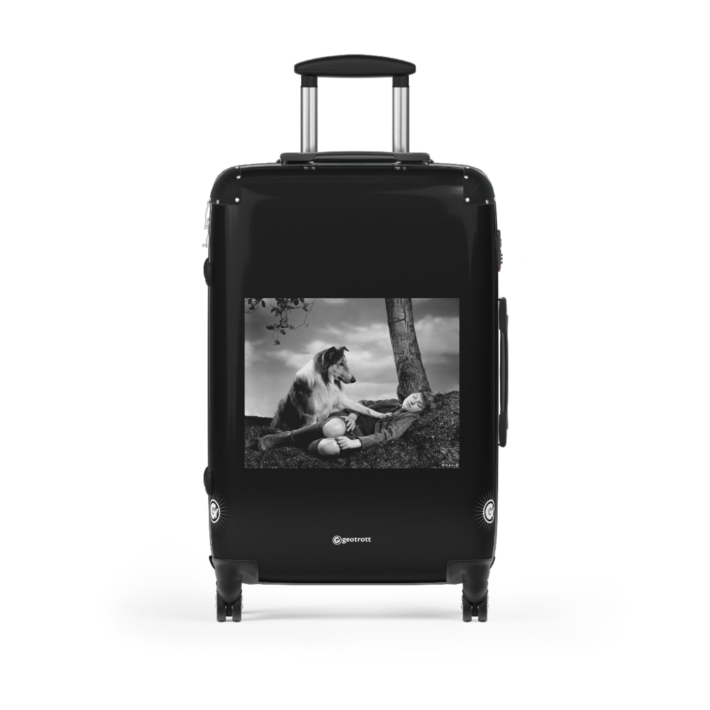 Unleash your inner adventurer with this iconic Concerned Lassie Rolling Suitcase, inspired by the heartwarming classic, Lassie Come Home! Featuring a stunning print of Lassie placing her paw on the sleeping Joe Carraclough, this luggage bag is a nostalgic nod that’ll have you feeling like the ultimate protector on the go!