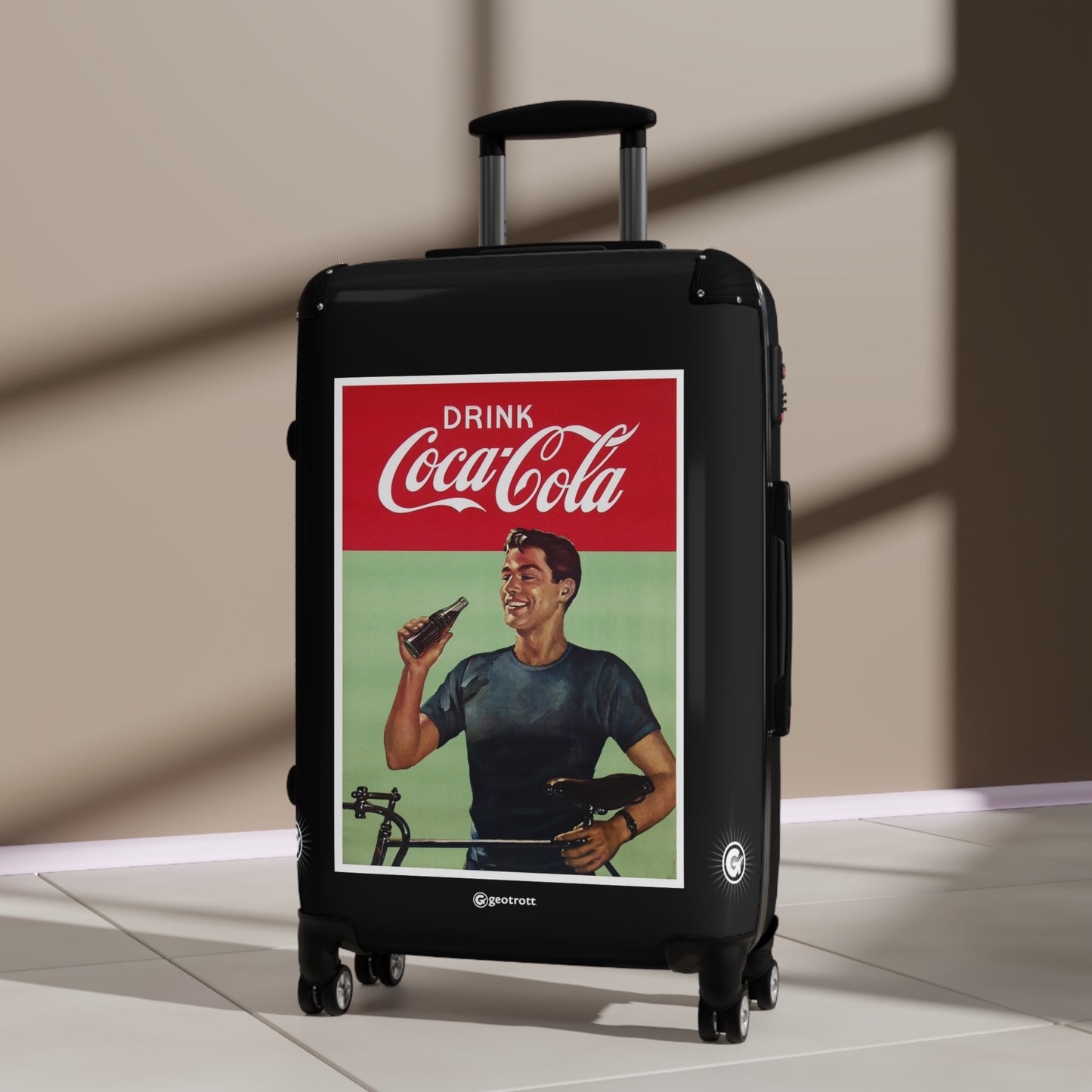 Pack your bags and turn heads with this Drink Coca-Cola Handsome Fit Man Vintage Poster Rolling Suitcase! Bringing that classic 1950s ad charm to the modern travel game, this suitcase drips with retro cool—the perfect blend of old-school style and first-class function. Whether you’re hitting the city or cruising to your next vacay, this piece is a certified head-turner, just like the sharp-dressed gents from the golden age of advertising!