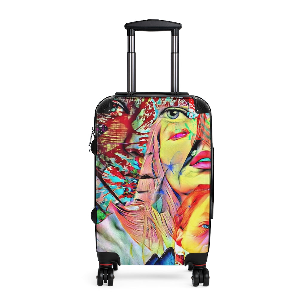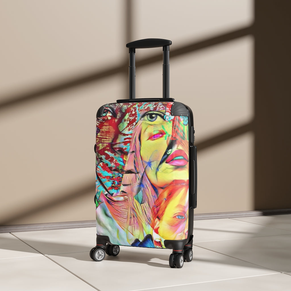 Geotrott Eddy Bogaert Graffiti Art Girl Face 4 Cabin Suitcase Extended Storage Adjustable Telescopic Handle Double Wheeled Polycarbonate Hard-Shell Built-In Lock