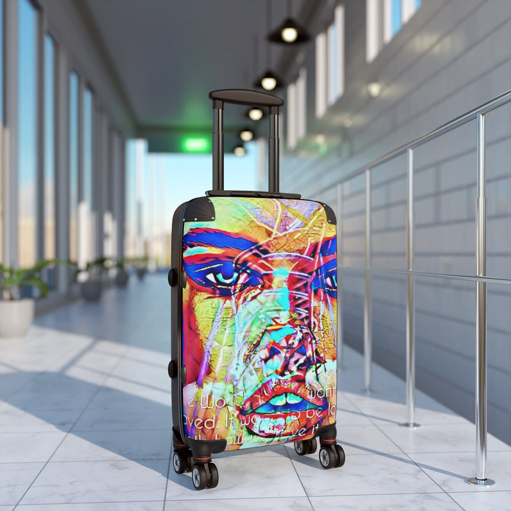 Geotrott Eddy Bogaert Graffiti Art Girl Face Adriana Lima Cabin Suitcase Extended Storage Adjustable Telescopic Handle Double Wheeled Polycarbonate Hard-Shell Built-In Lock