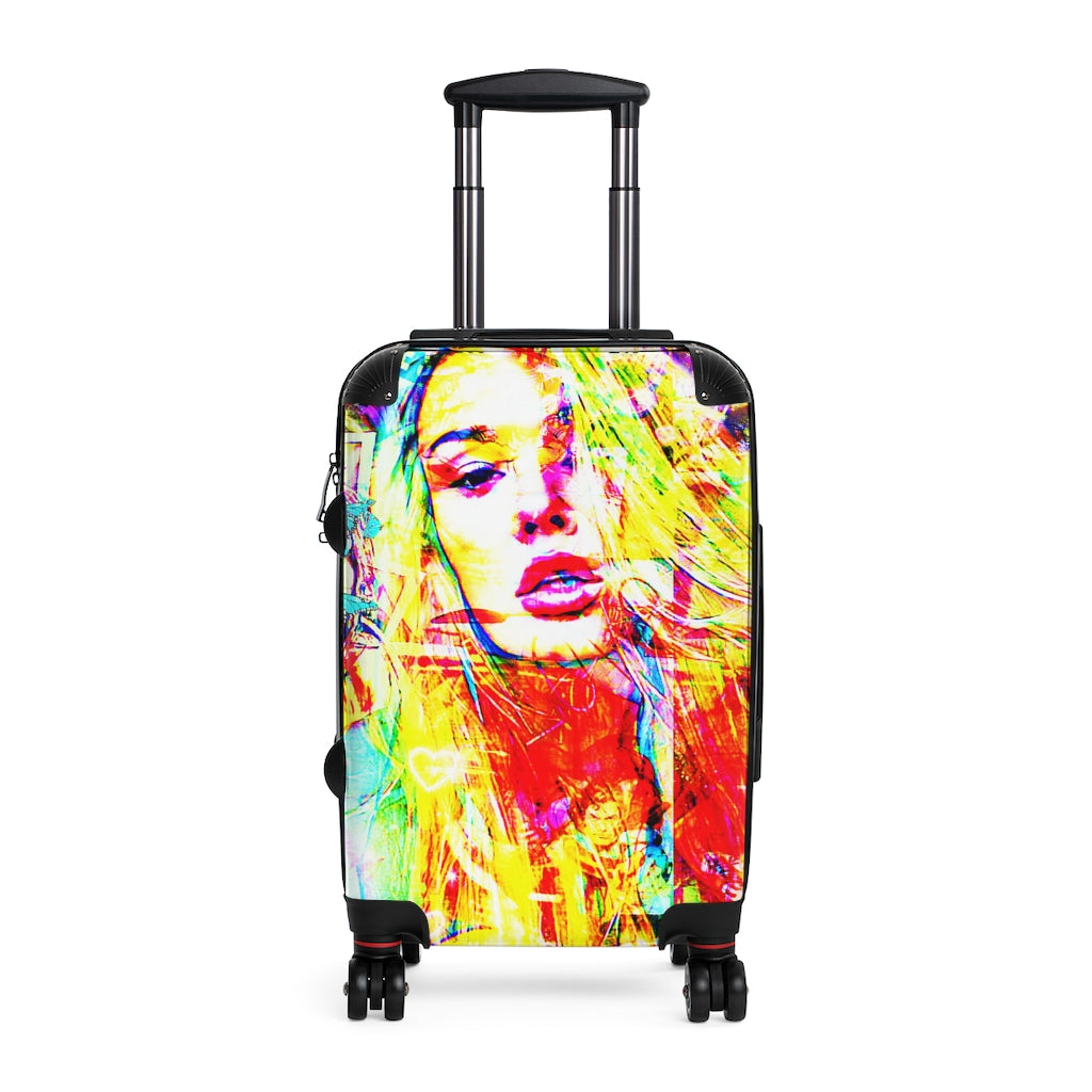 Geotrott Emma Face Graffiti Art Cabin Suitcase Extended Storage Adjustable Telescopic Handle Double Wheeled Polycarbonate Hard-Shell Built-In Lock