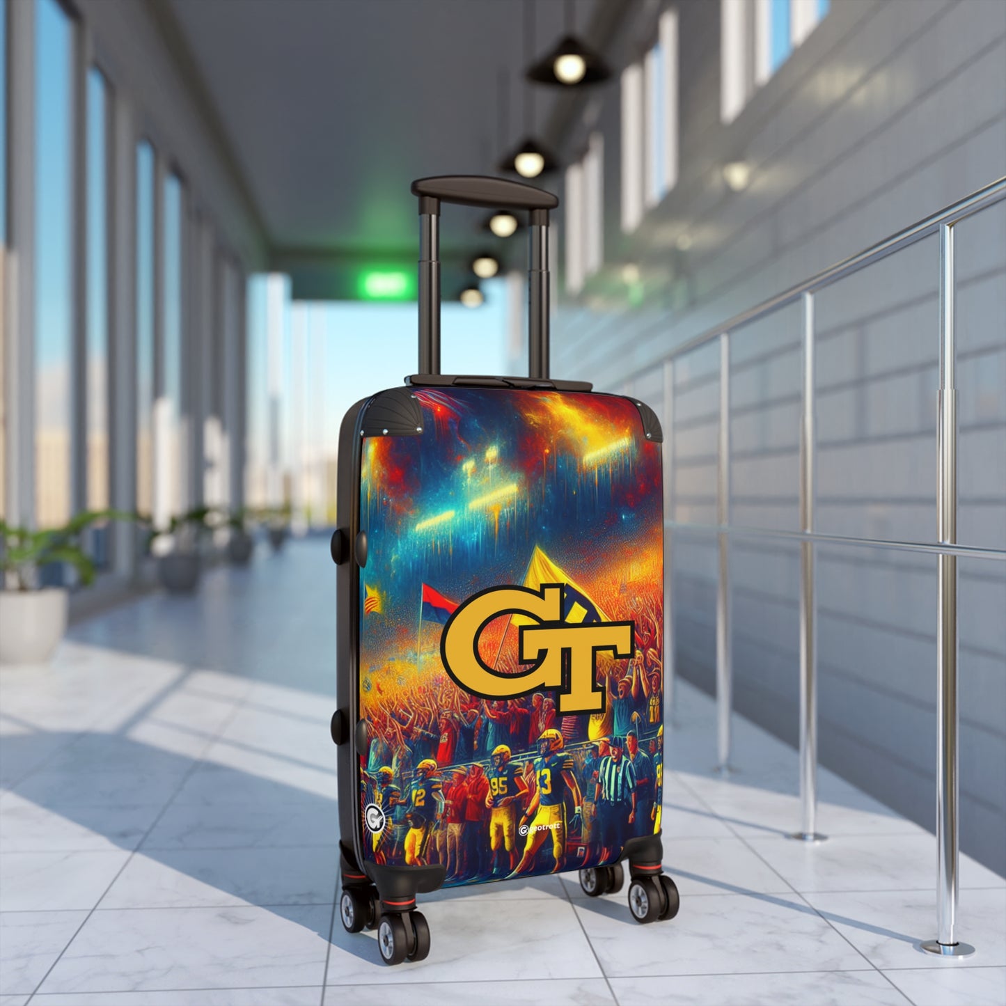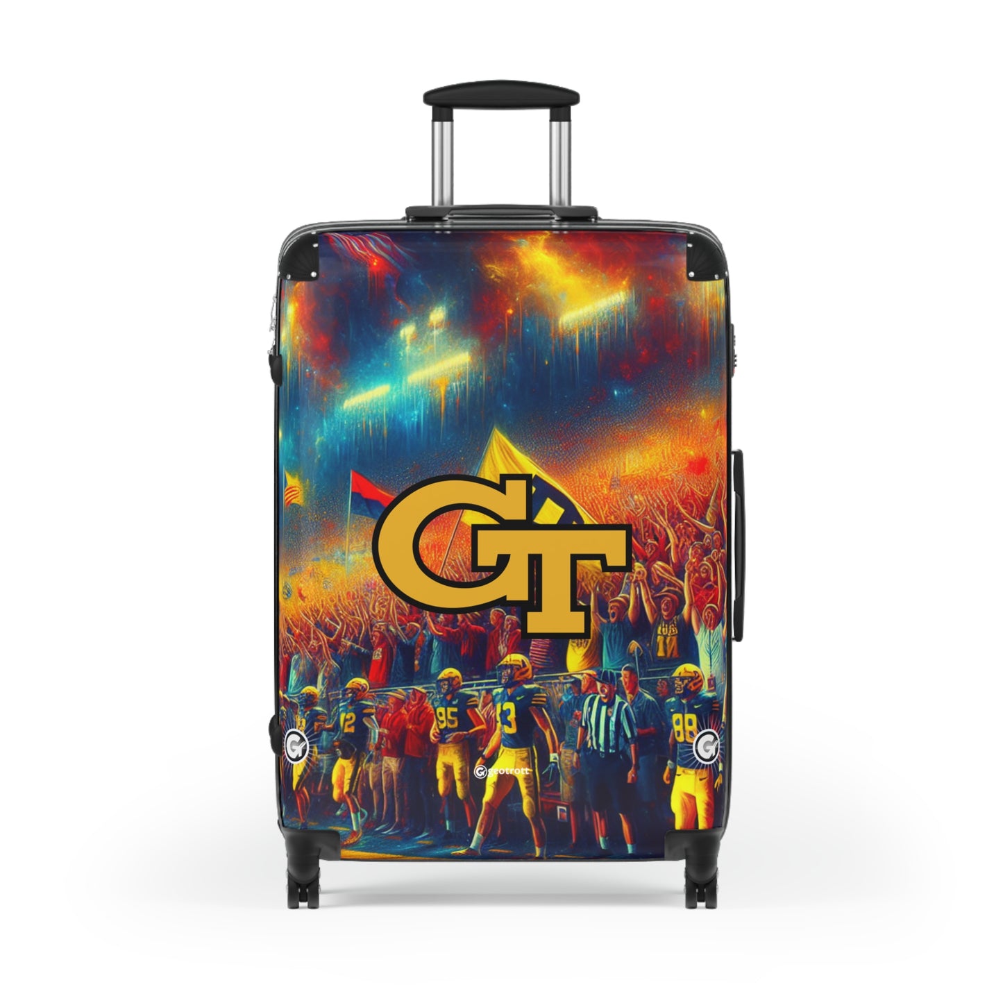 Show off your Yellow Jackets pride with this stinger-sharp Georgia Tech Rolling Suitcase! Featuring the bold gold and navy blue of Tech tradition, paired with a sleek honeycomb-inspired design, this luggage makes a statement louder than the Ramblin’ Wreck revving on game day!