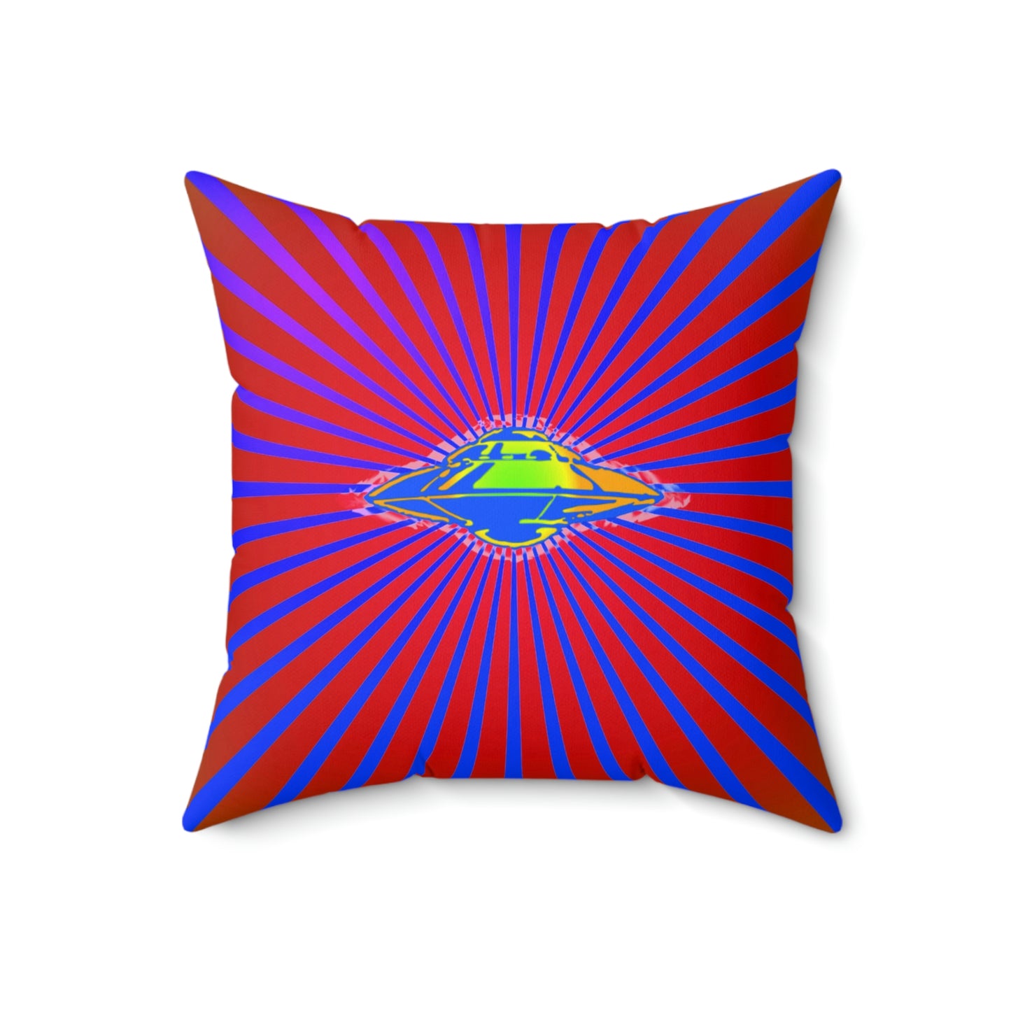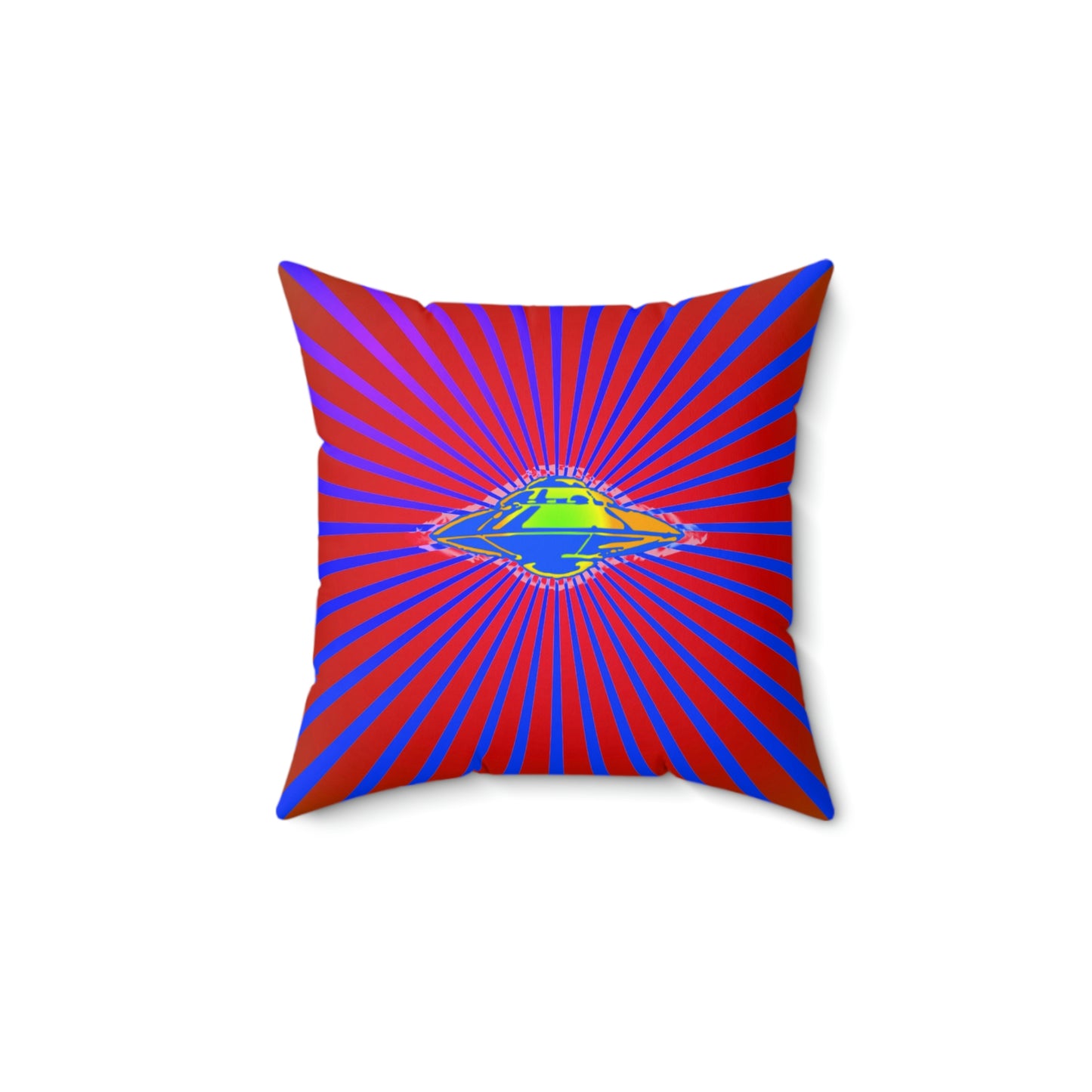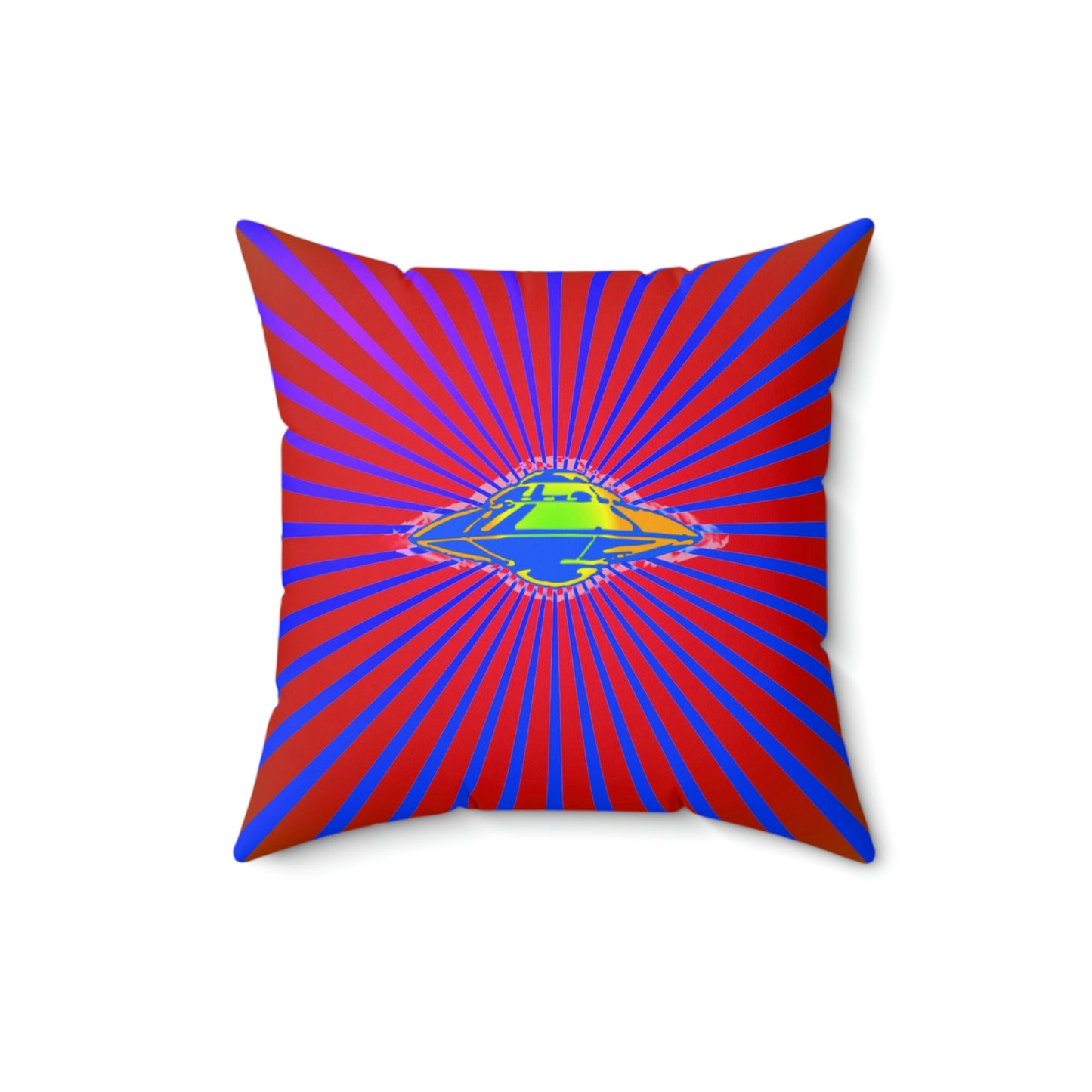 Geotrott Alien Ufo Space Ship Flying Saucer Secret Aircraft Pink Blue Spun Polyester Square Pillow