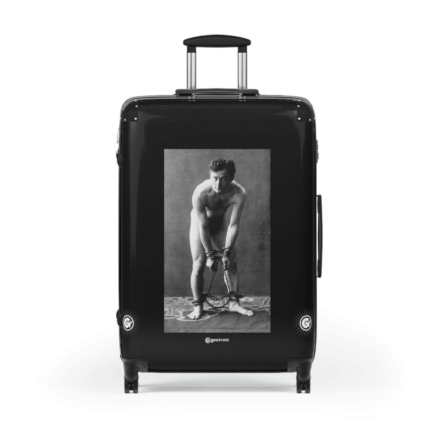 Unleash your inner escape artist with this enchanting Harry Houdini Rolling Suitcase, featuring a captivating design of the legendary magician in chains from his daring 1906 act! This luggage bag is a showstopper that’s sure to turn heads as you travel the world, making you feel like the ultimate illusionist on the go!