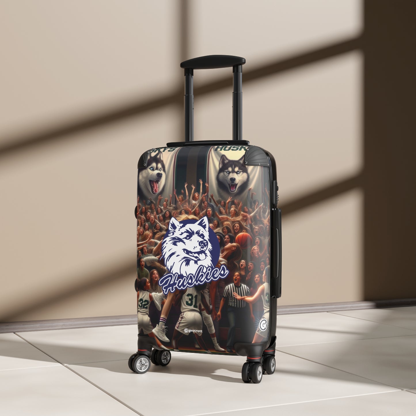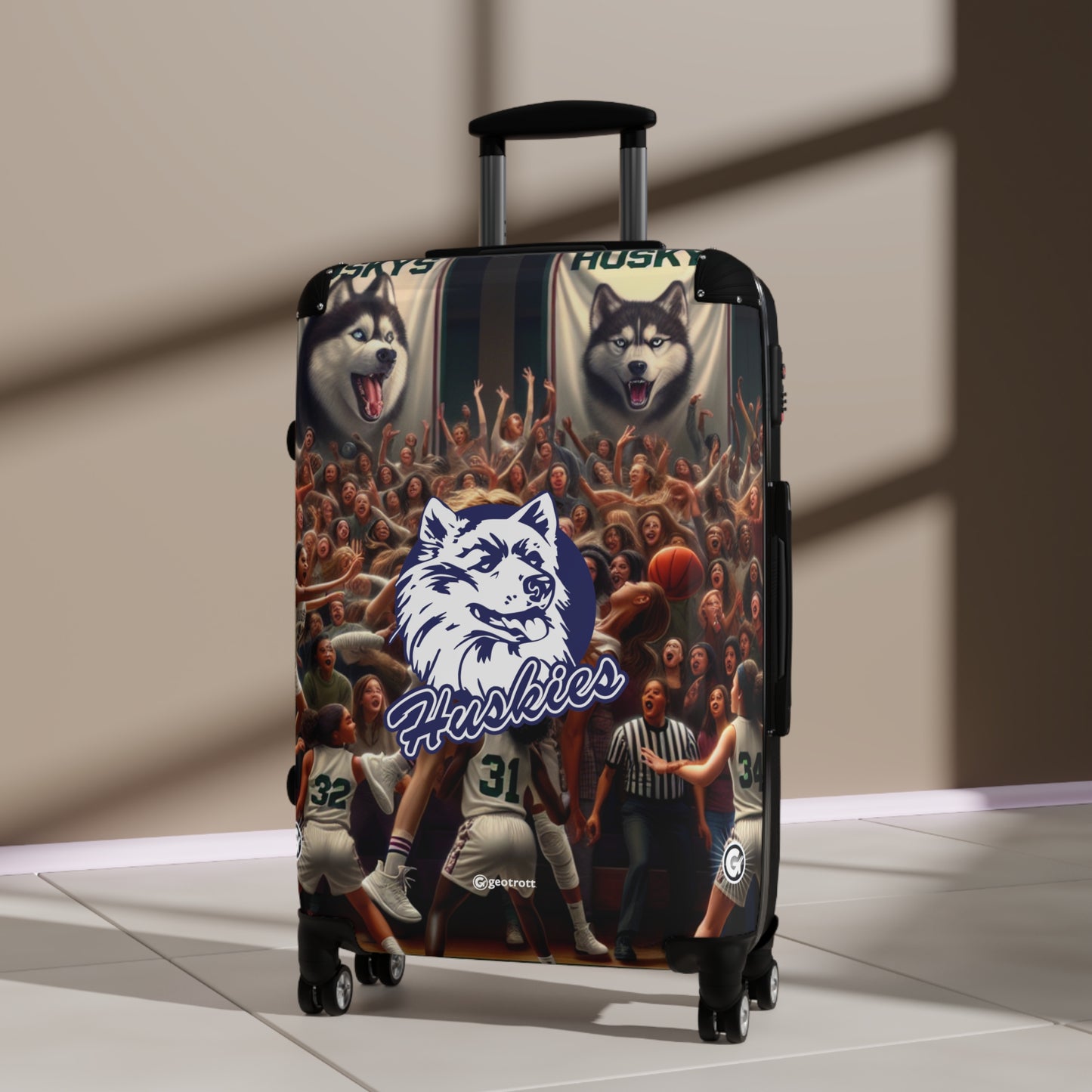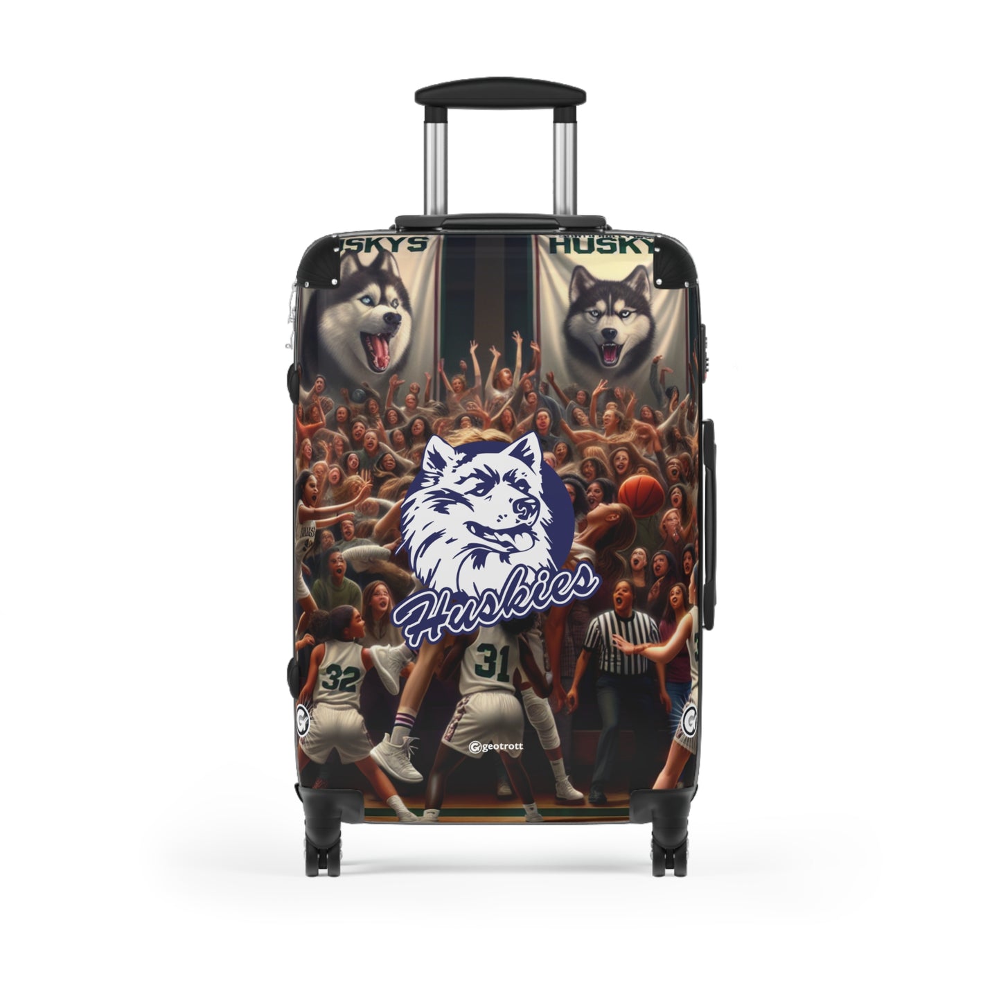 Rep your North Hollywood Huskies Freshman Girls Basketball squad everywhere you go with this standout rolling suitcase! Featuring bold Huskies colors and a sleek, high-energy design, this luggage is as unstoppable as your squad on a fast break. Whether you're traveling for a tournament or just heading out for the weekend, this suitcase screams "Huskies Hustle!"