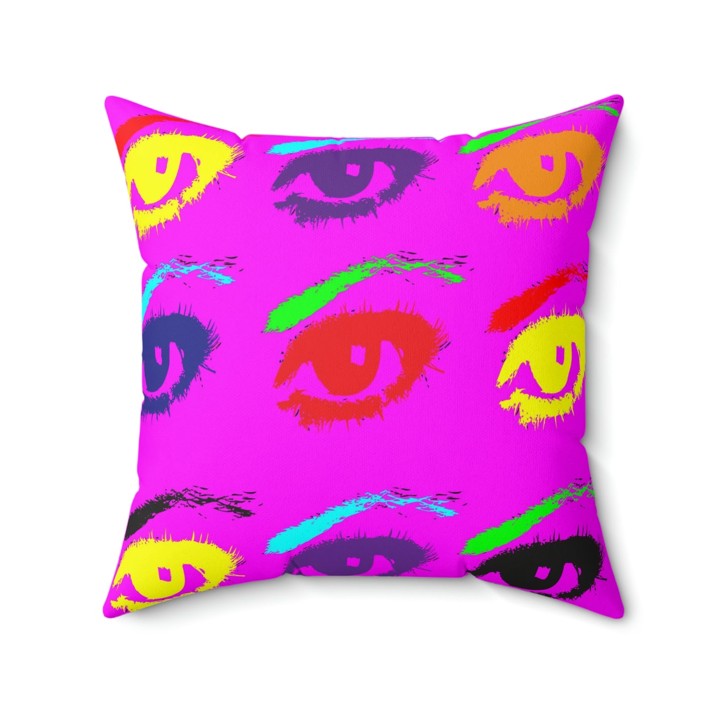 Geotrott Pink Warhol Style Eyes Art Multy Colored Eyes Grid Spun Polyester Square Pillow