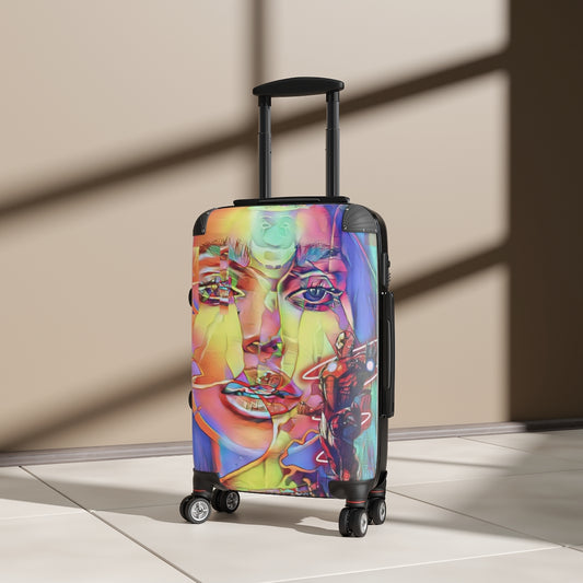 Geotrott 美丽女孩亲吻外星人涂鸦登机箱 扩展存储可调节伸缩手柄 双轮聚碳酸酯硬壳内置锁
