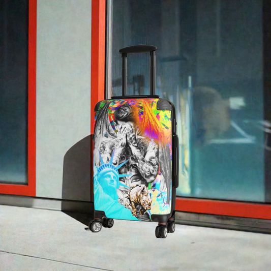 Geotrott 涂鸦艺术 Bieber 流行歌星自由女神像登机箱 扩展存储可调节伸缩手柄 双轮聚碳酸酯硬壳内置锁