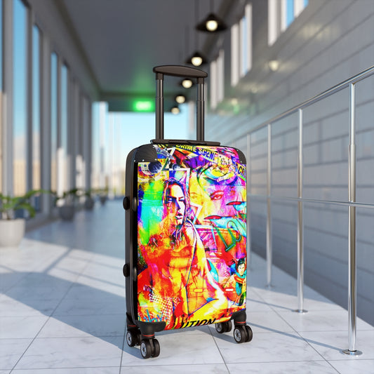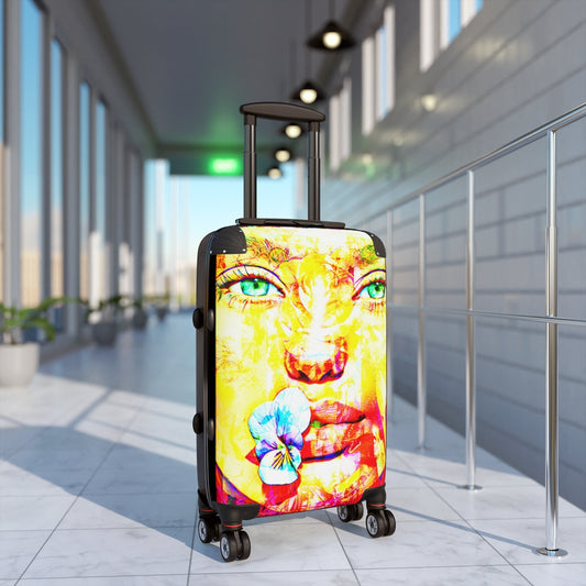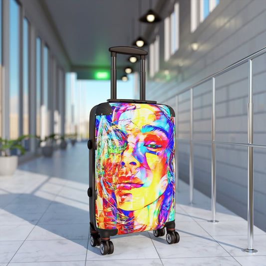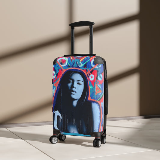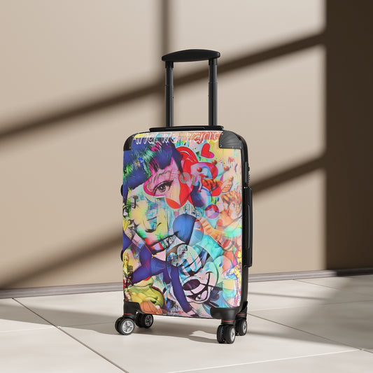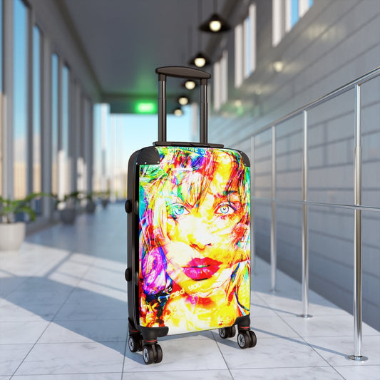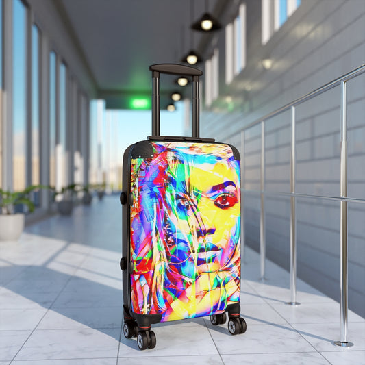 Geotrott Eddy Bogaert 涂鸦艺术女孩脸 11 英寸登机箱 扩展存储 可调节伸缩手柄 双轮 聚碳酸酯 硬壳 内置锁