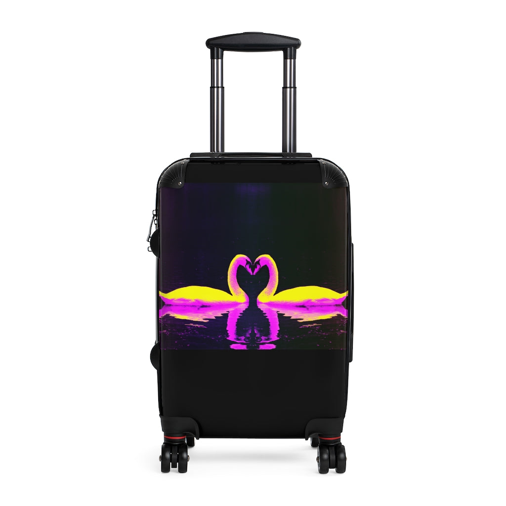 Geotrott Swans 亲吻黑色和粉红色艺术登机箱扩展存储可调节伸缩手柄双轮聚碳酸酯硬壳内置锁
